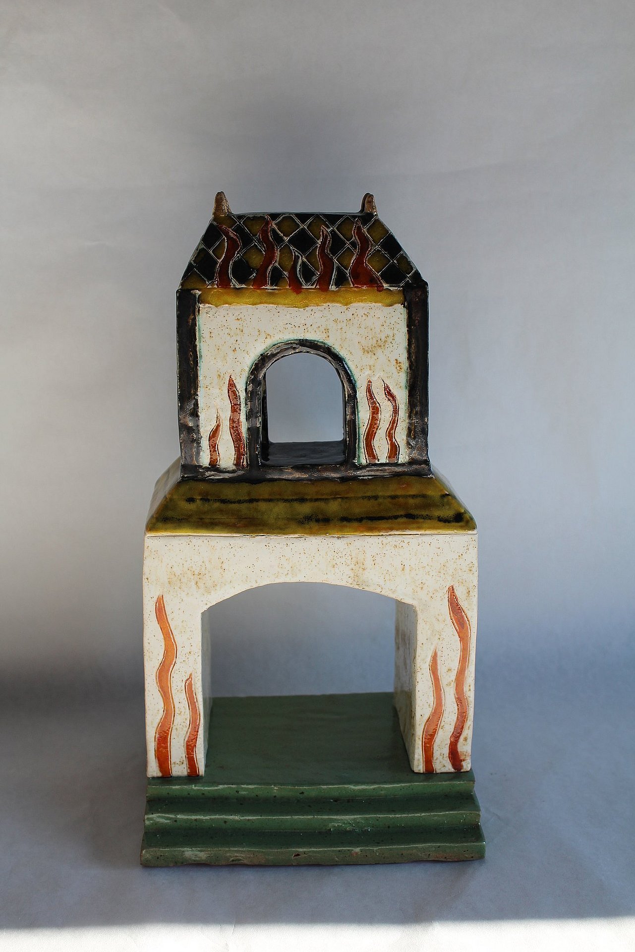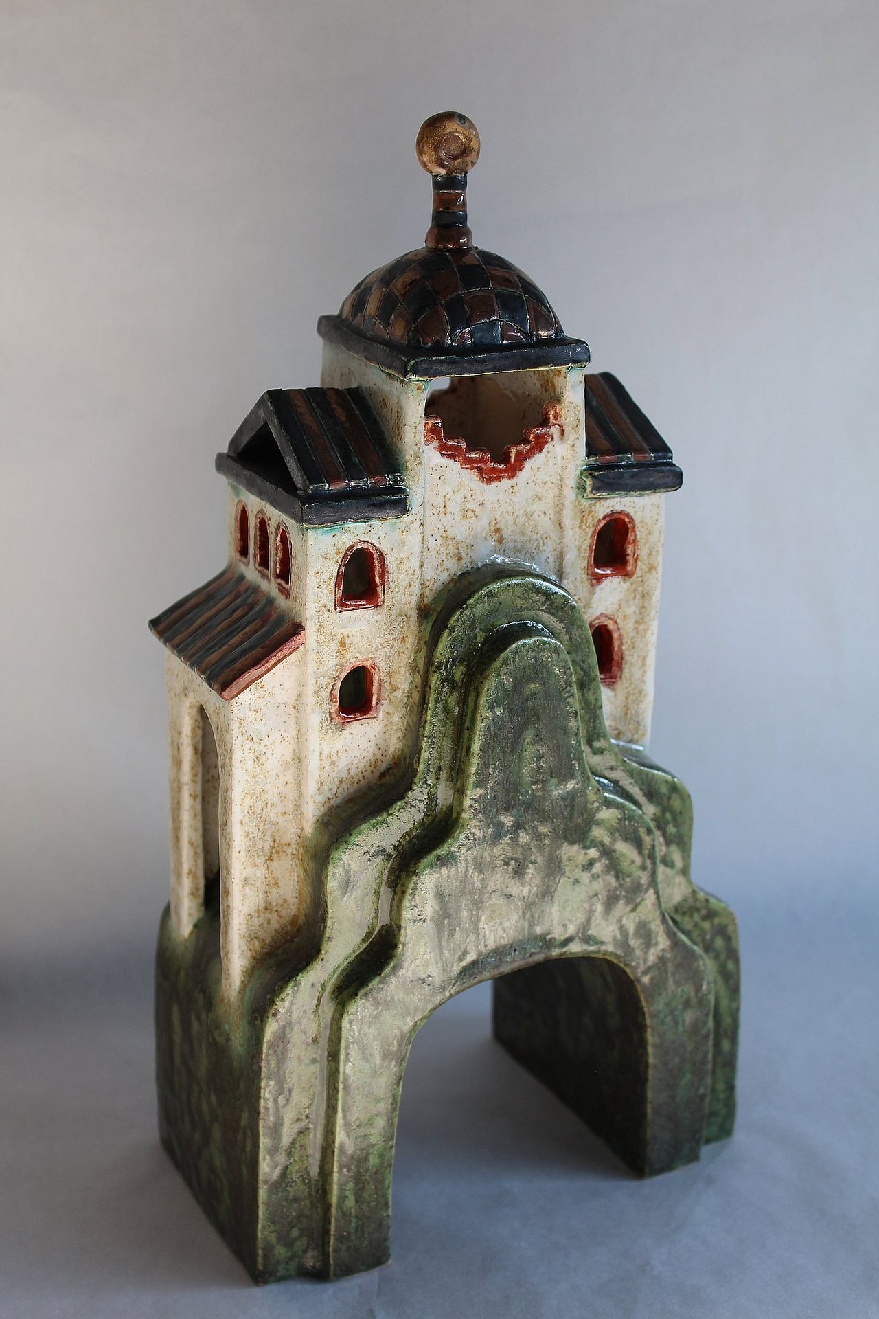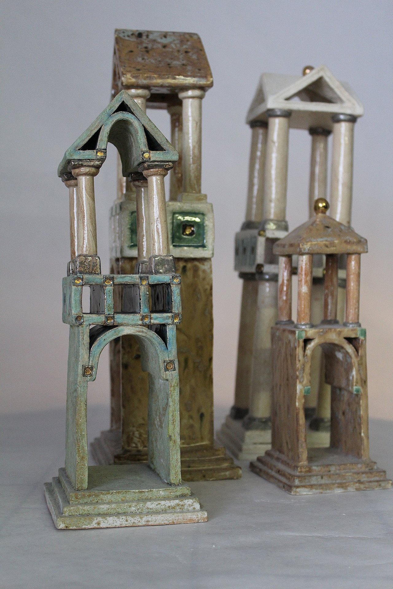 In mijn werk ziet u elementen van de klassieke en romaanse bouwkunst. Ik ben gefascineerd door deze bouwkunst, de overblijfselen ervan, de plekken op de aarde die gekozen werden voor deze bouwwerken.